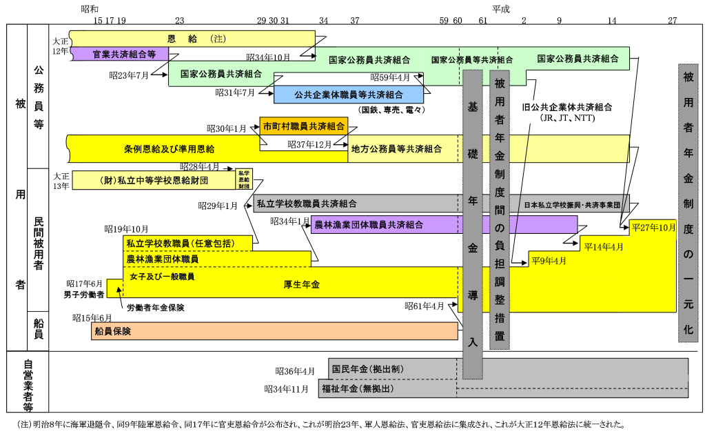 明治8年の恩給制度/明治38年の職工組合/昭和17年の労働者年金法 から